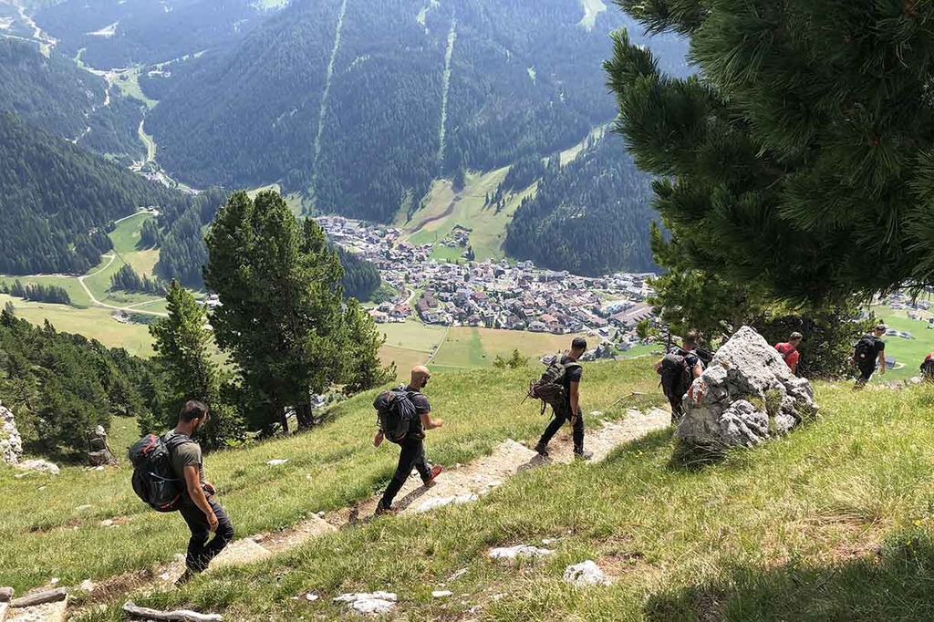 Arrivati al rifugio Firenze si sale per ripido sentiero alla Forcella della Piza per poi scendere al rifugio Stevia e per finire al paese di selva di Val Gardena. Pernottamento in hotel