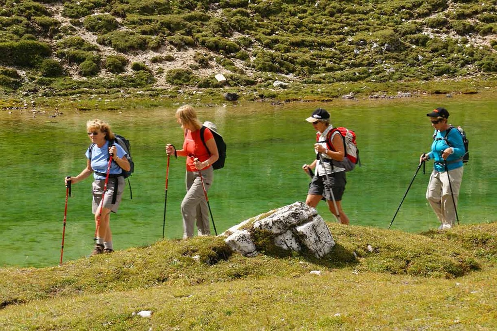 Si prosegue verso sud fino ad una piccola ma accogliente malga costeggiando un lago alpino dove si rispecchiano le montagne circostanti.
