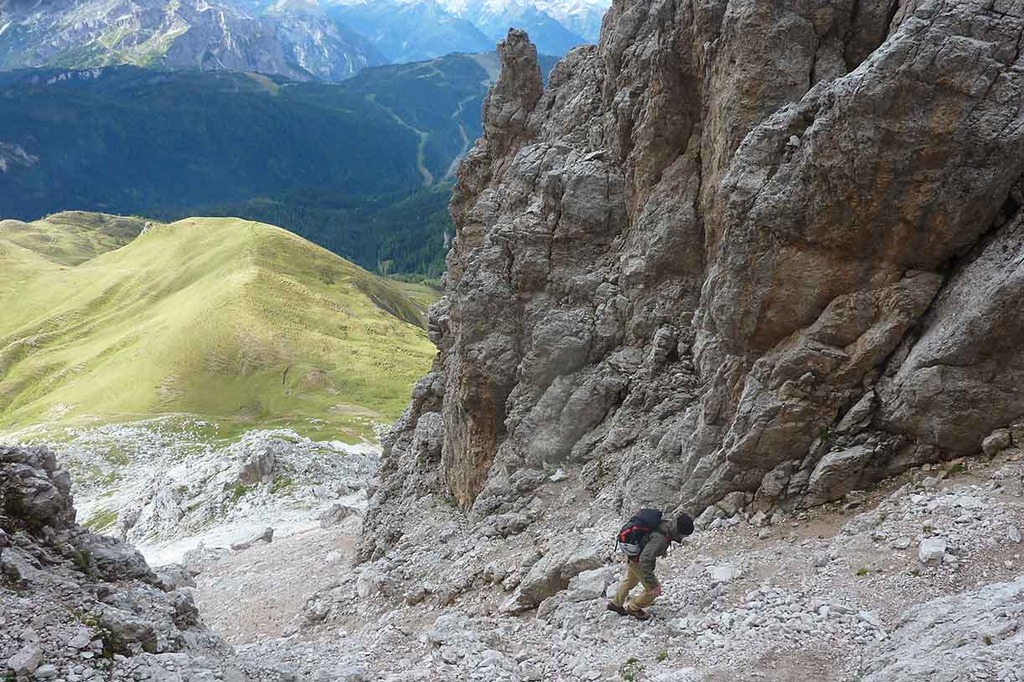 Dal rifugio Croda da Lago (si consiglia di salire da Cortina con il servizio jeep 4x4) si segue una bella stradina sterrata fino alla Forcella Ambrizzola che si affaccia al grande altipiano di Mondeval. Seguendo la cresta verso di confine in direzione Est si raggiunge un grosso masso per poi proseguire per tracce di sentiero moto franoso fino all’attacco della via (2 ore circa dal rifugio).