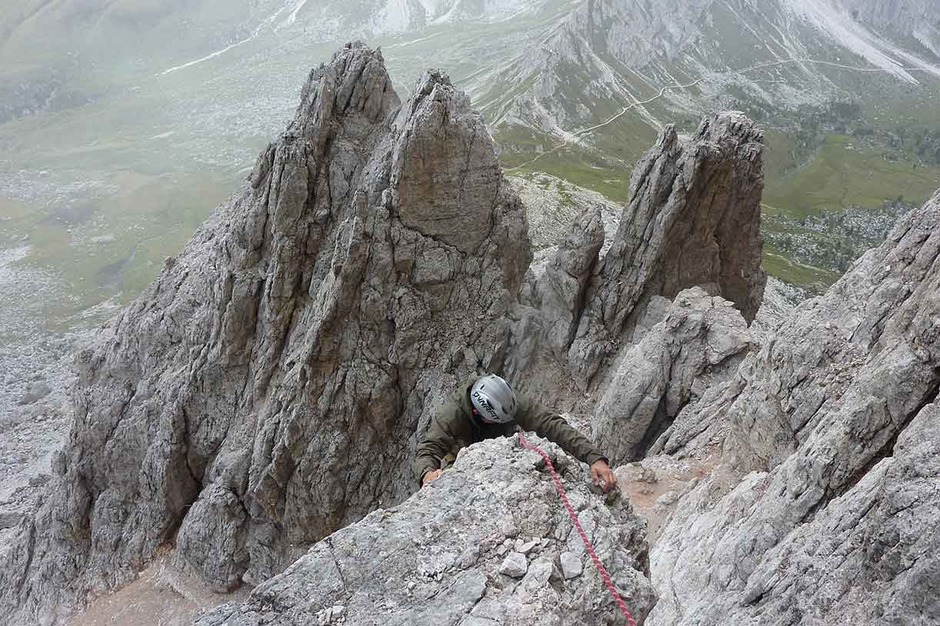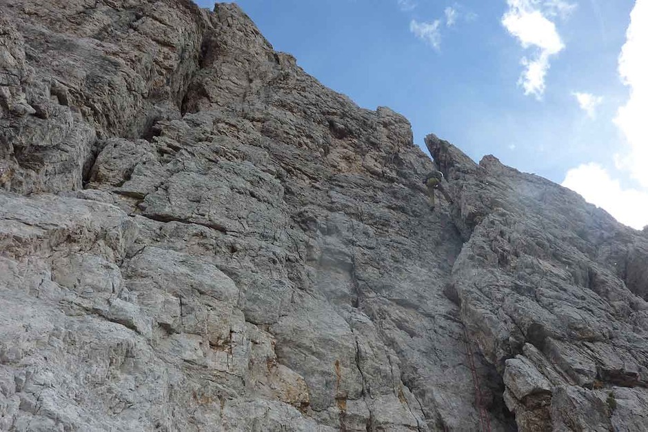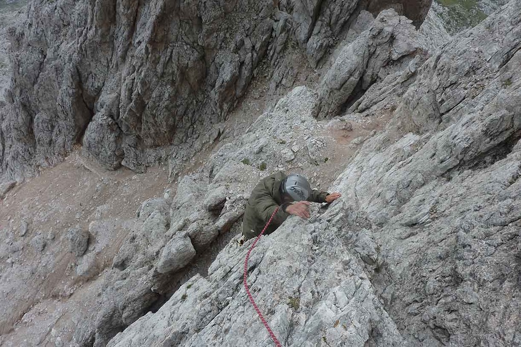 Una variante interessante é salire dritti per bella parete di 3 grado con sosta su spuntone, poi per cresta alla cima.