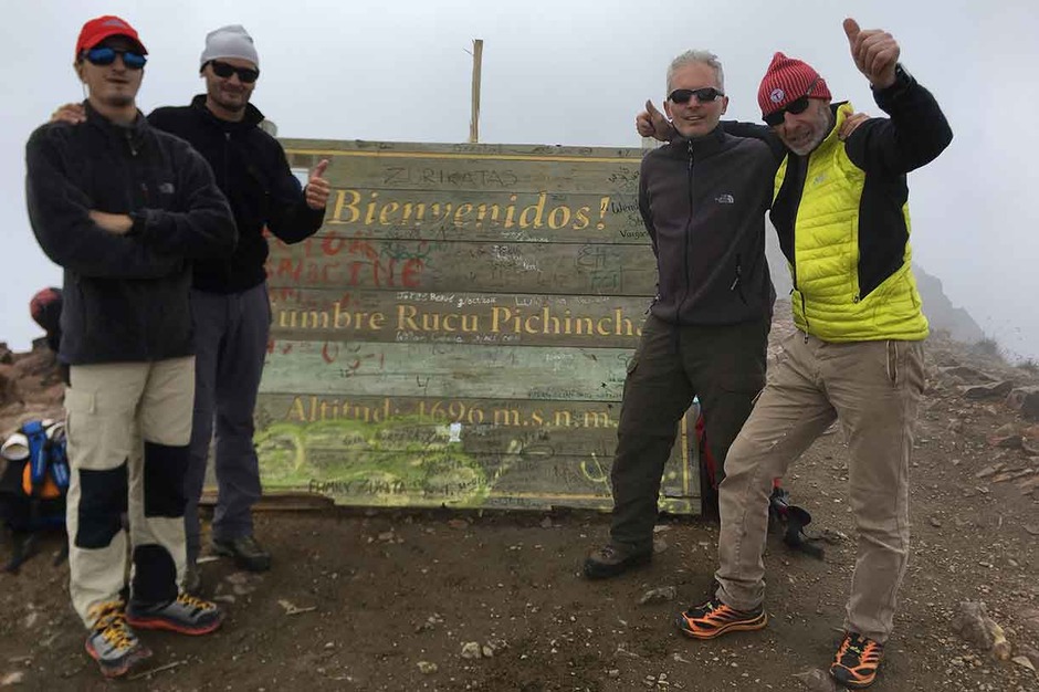 Dopo i primi giorni di trekking e ambientamento, il gruppo ha salito tre vulcani (degli oltre 50 presenti in Ecuador, dei quali molti attivi) obiettivo della spedizione alpinistica in Ecuador: il vulcano Pichincha di 4627metri, il vulcano Cayambe di 5800 metri e il vulcano Chimborazo di 6310 metri (il vulcano Chimborazo ha più cime, quella raggiunta è la cima Ventenilla di 6270 metri).