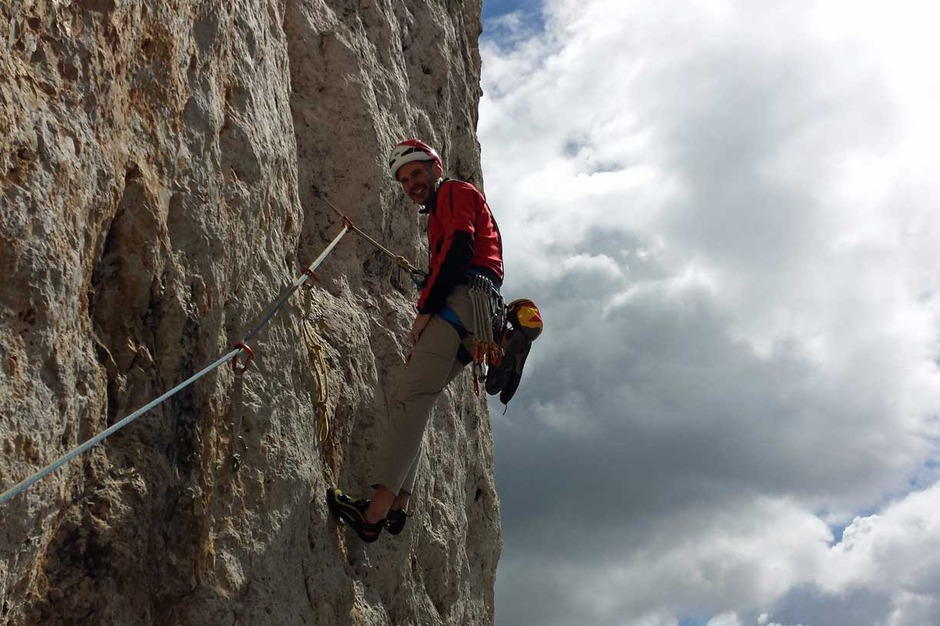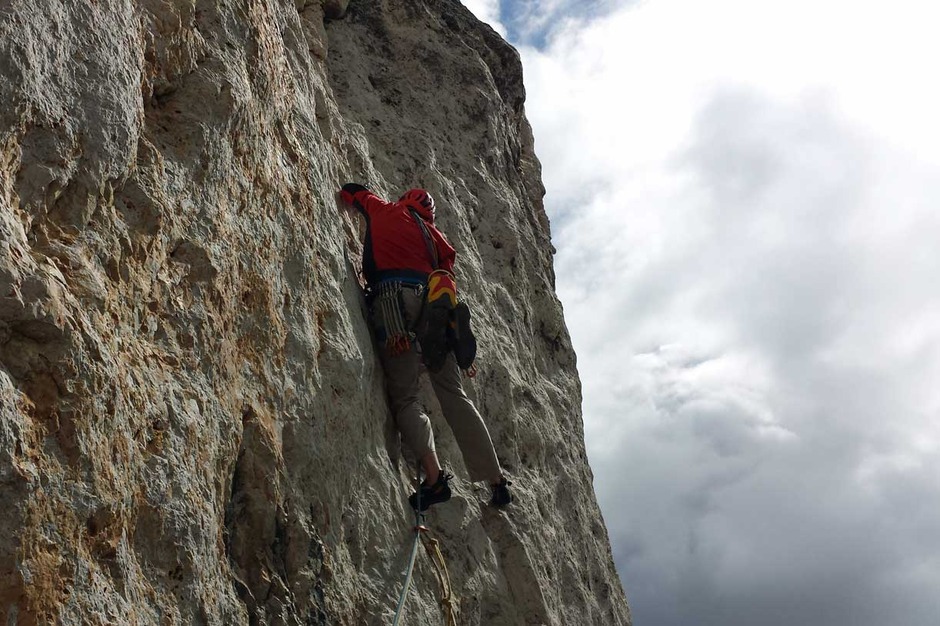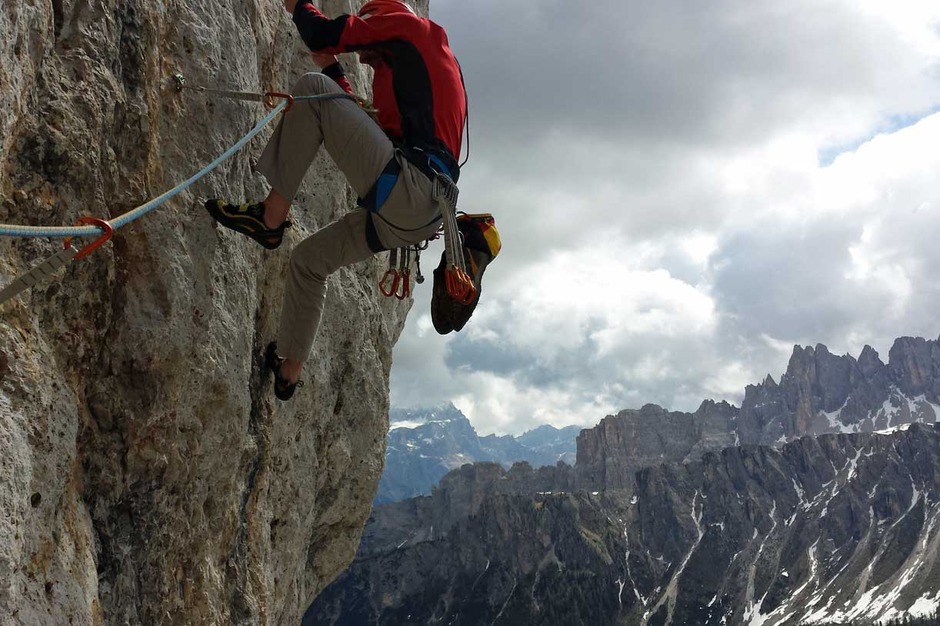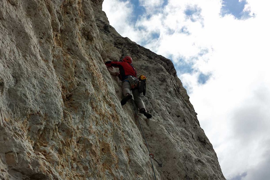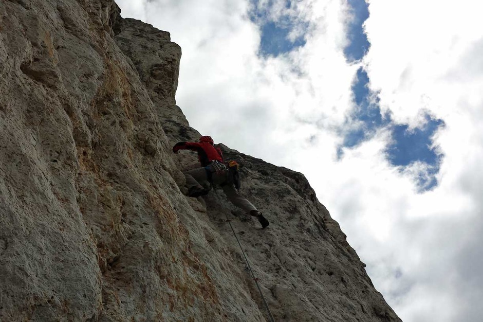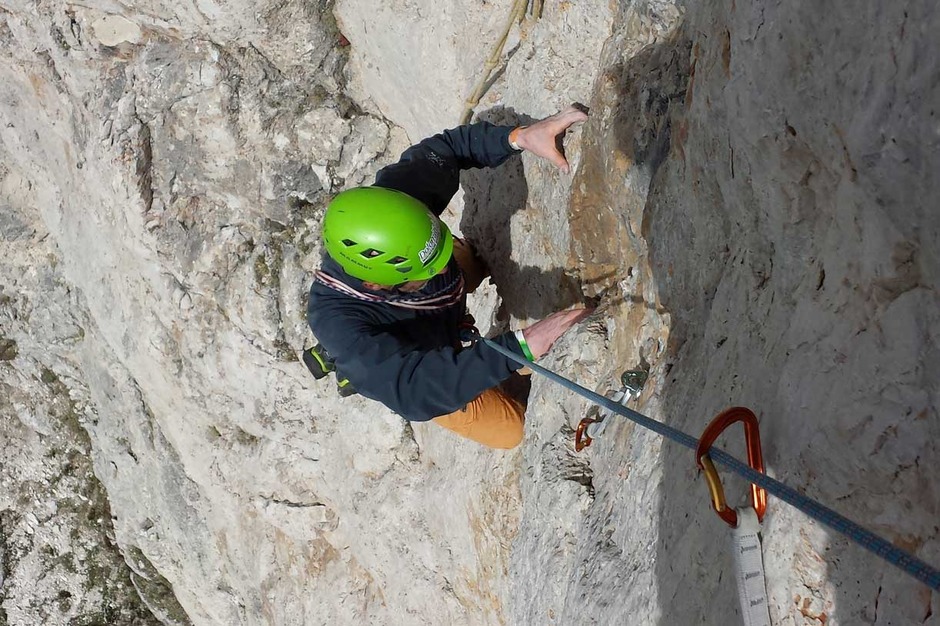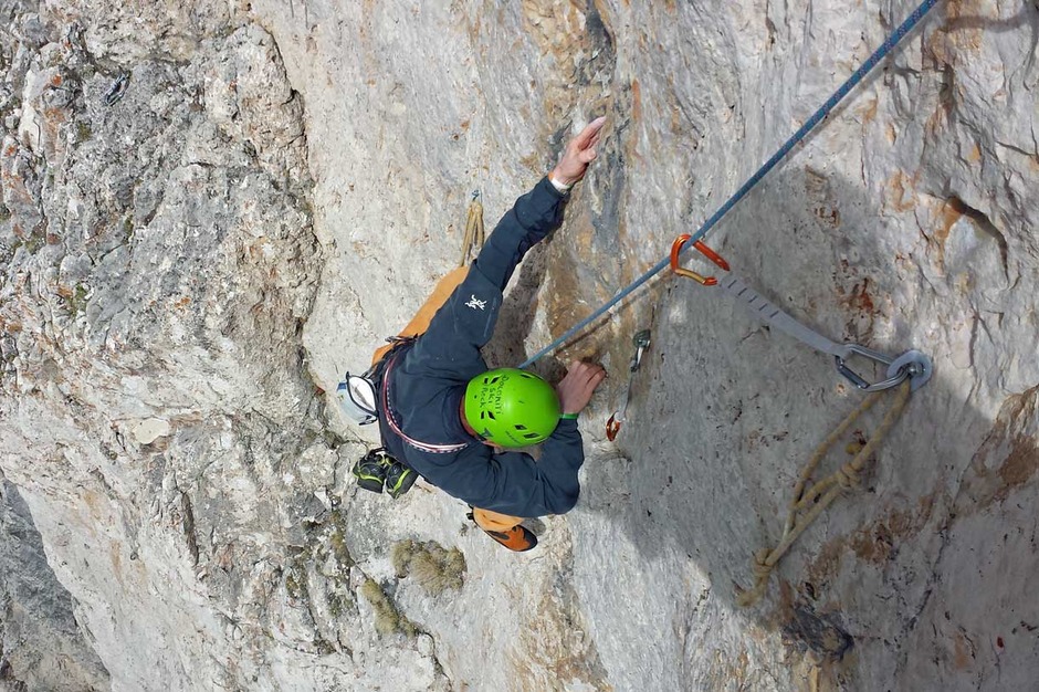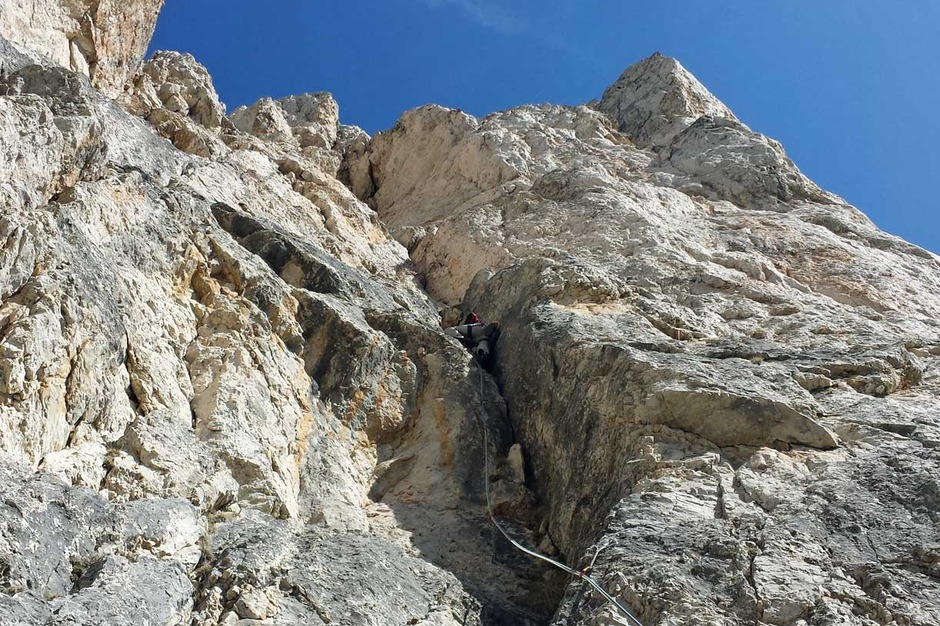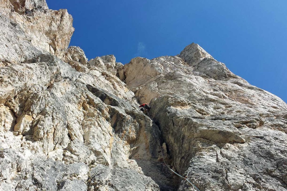 Arrampicata sostenuta e continua tra placche, diedri e fessure che ha testato l'allenamento in una delle prime uscite dolomitiche di stagione.