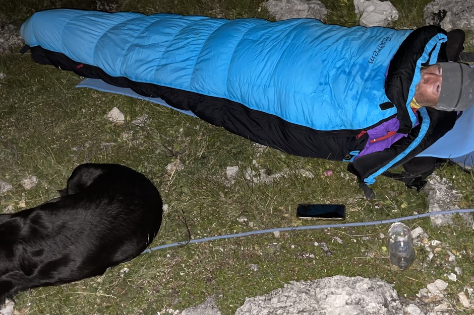 Con l'amico Samuele e il mio cane Luce, abbiamo programmato di bivaccare a " cielo aperto" e sotto le stelle in montagna a 2200 metri di quota. Siamo partiti il pomeriggio con zaini belli pesanti per raggiungere un posto meraviglioso nelle vicinanze delle Tre Cime di Lavaredo e il lago Misurina. La sera ci siamo preparati una abbondante pastasciutta all'arrabbiata e altri stuzzichini appetitosi, purtroppo la bottiglia di vino si è rotta cadendo sopra una roccia...