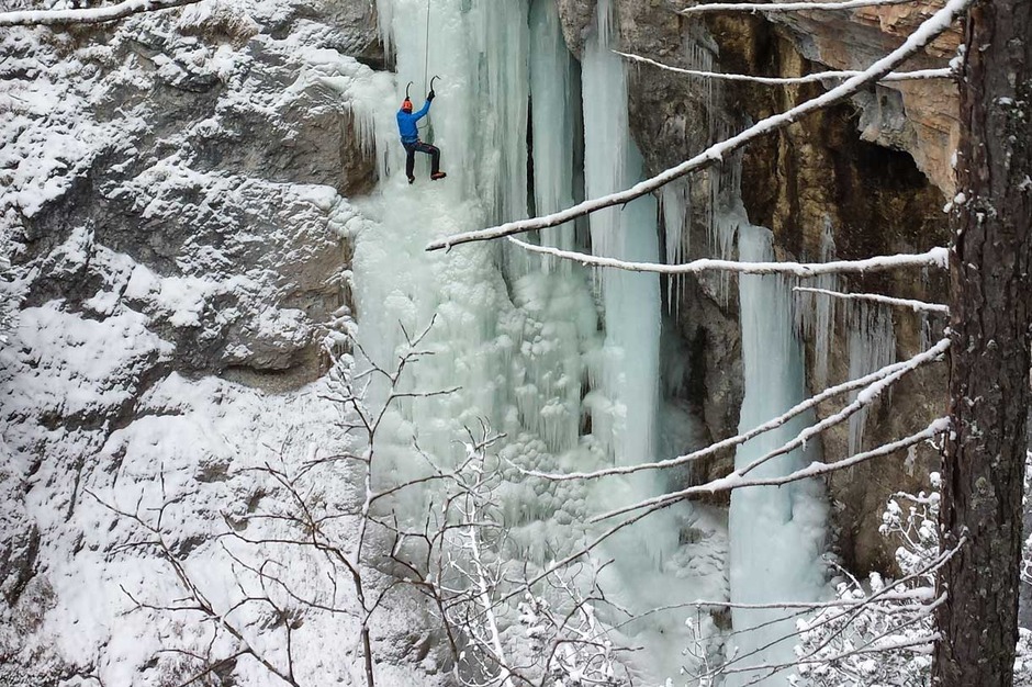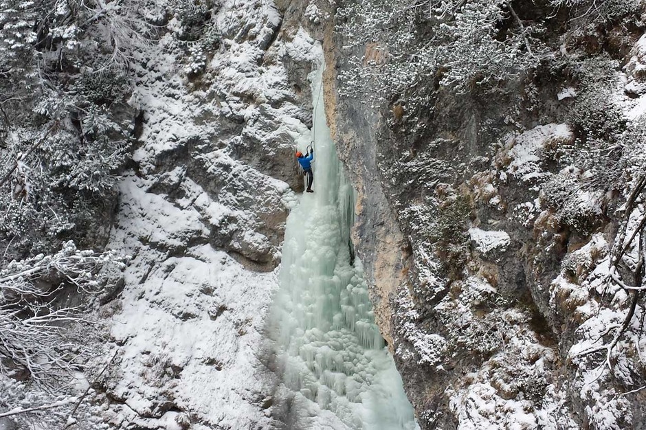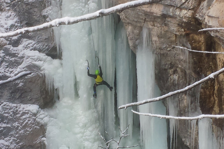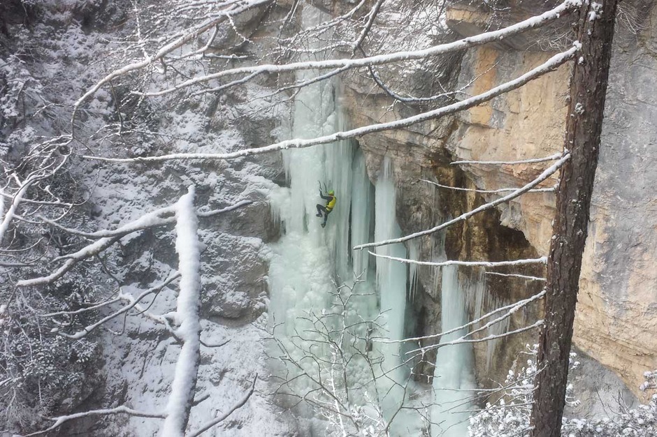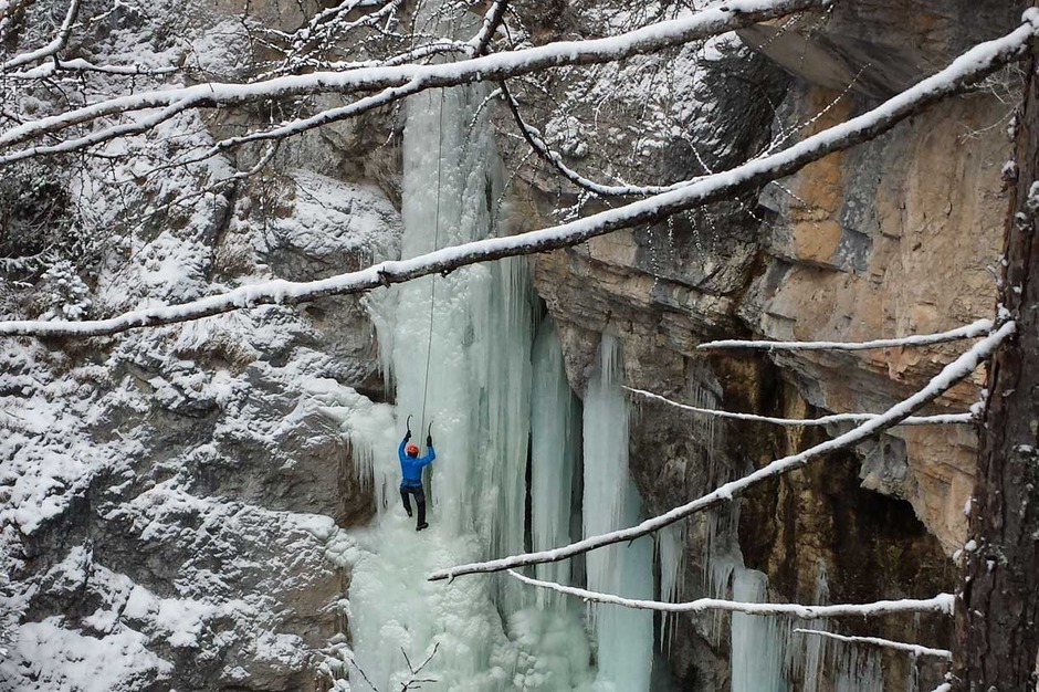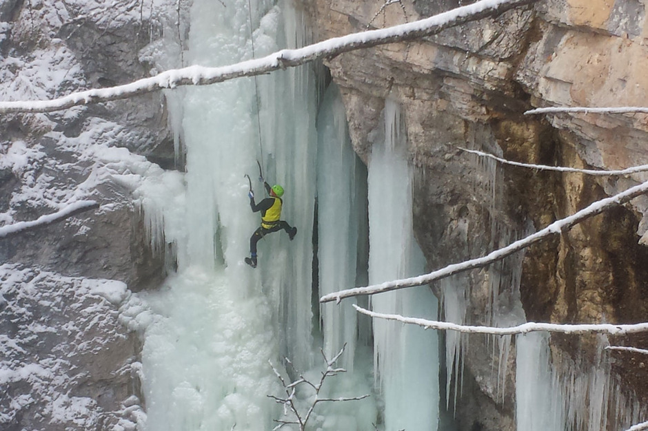 ContattaciBella arrampicata delle cascate di ghiaccio lungo il canyon del Ru Felizon a Cortina d'Ampezzo.