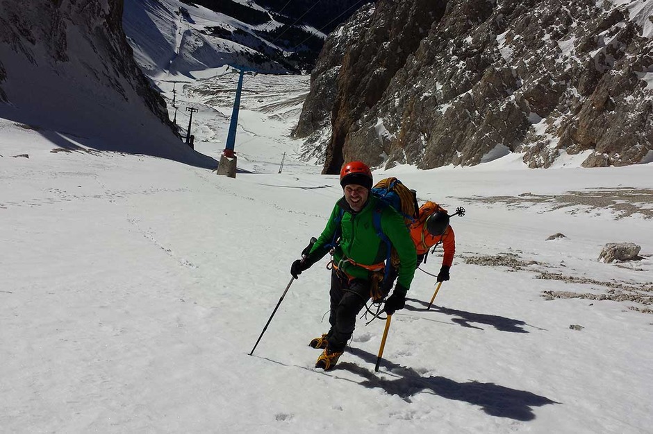 Il ritorno si effettua scendendo lungo il canalone Staunies fino a Son Forca, dove si riprende la seggiovia del Cristallo.