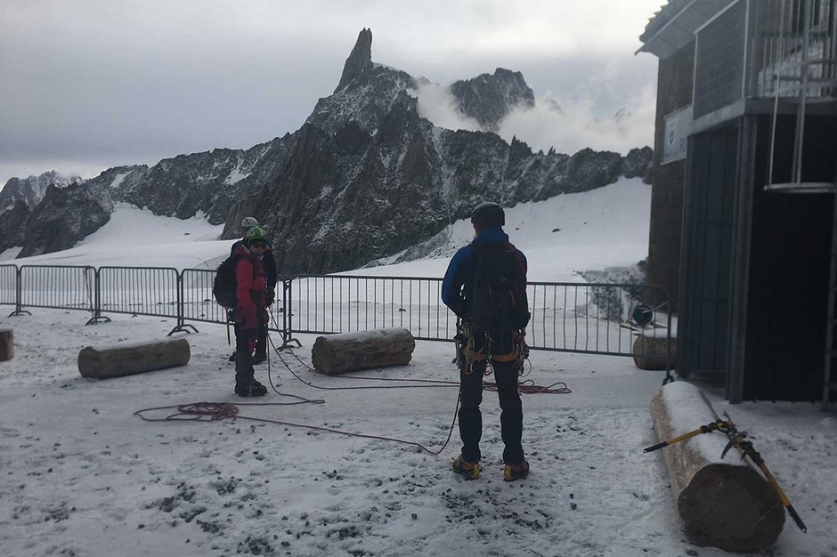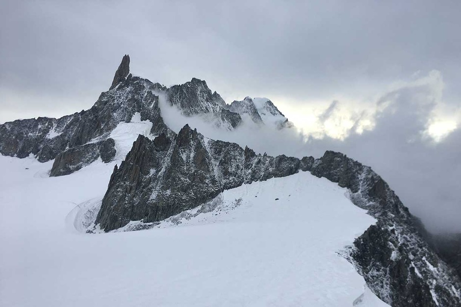Organizzata la spedizione, siamo partiti alla volta del Monte Bianco per affrontare la scalata al Dente del Gigante. Giunti sul posto, purtroppo però il tempo non è stato a nostro favore. Abbiamo trovato tanta nebbia e neve, e pertanto abbiamo dovuto optare per una semplice escursione sul ghiacciaio.