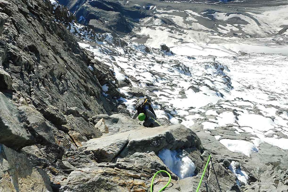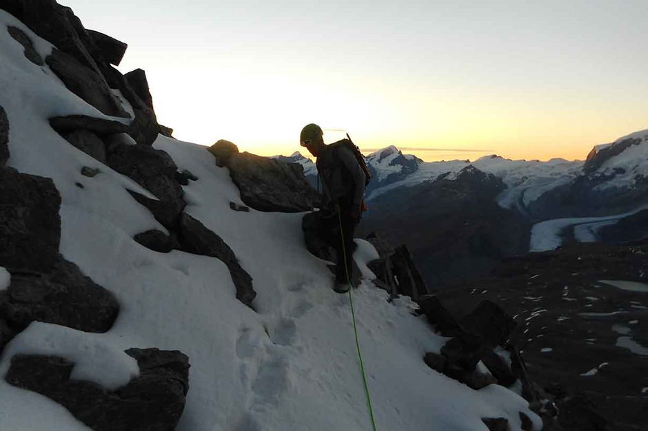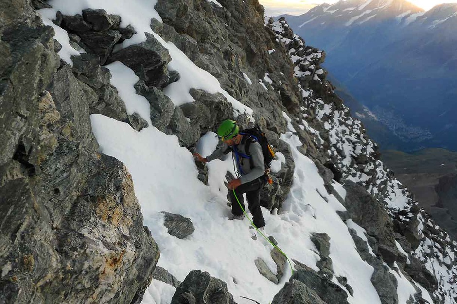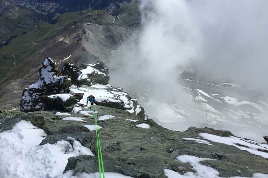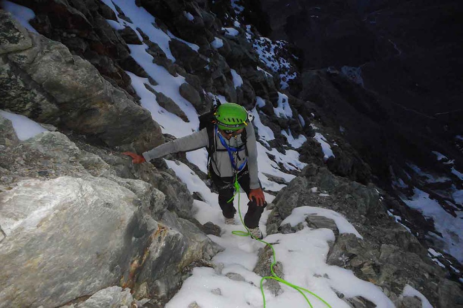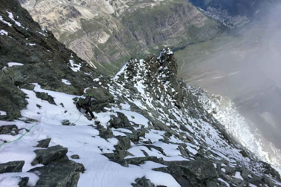 La grande parete del Cervino però non era in buone condizioni per la scalata, la via di salita presentava ancora neve e ghiaccio che, durante la progressione, ci ha un po' rallentato.