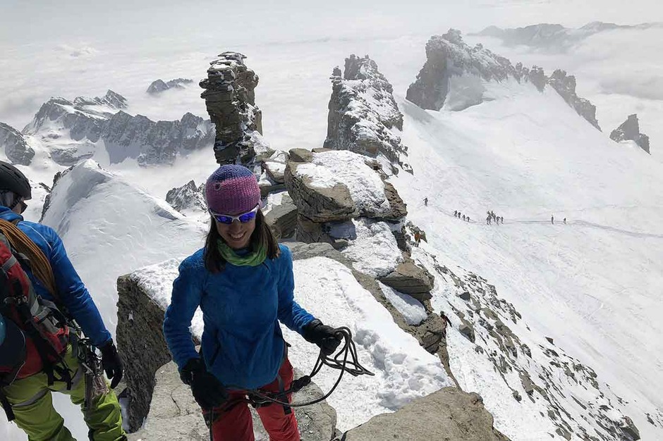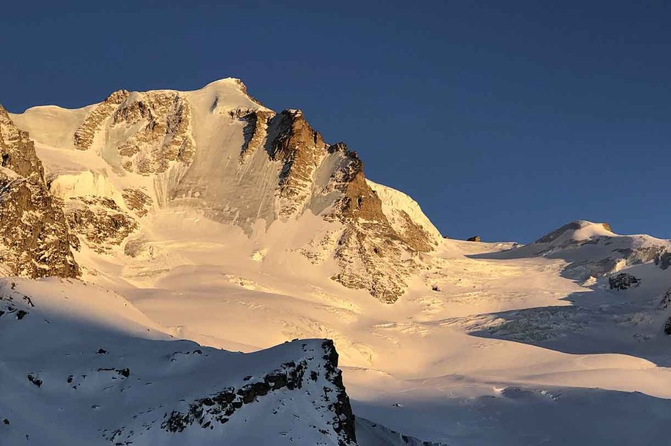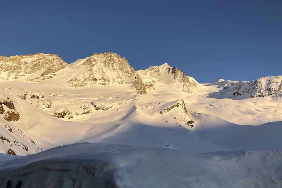 Il giorno seguente ci siamo svegliati alle 6 con con un'alba spettacolare sulla cima più alta delle Alpi, il Monte Bianco, con i suoi 4810 metri. Dopo una ricca colazione, siamo partiti alla volta della vetta.