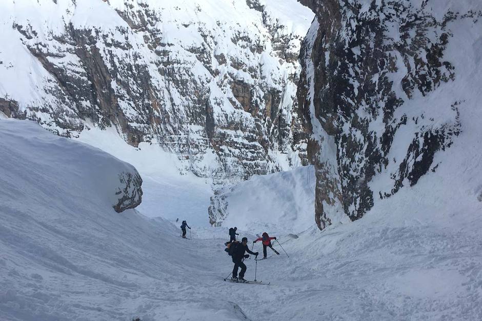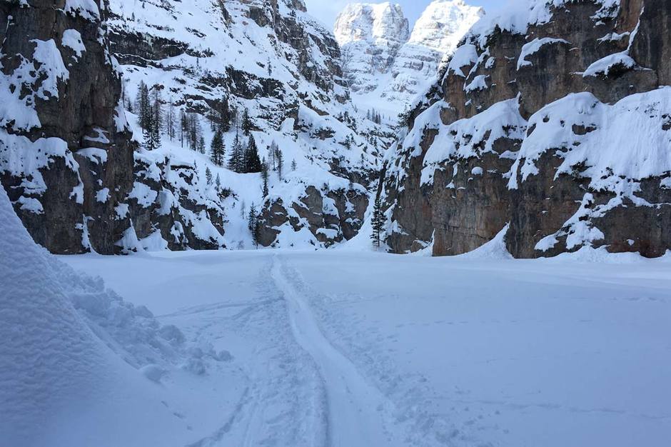La gita di sci alpinismo alla Forcella Cristallino di Misurina, nel gruppo del Cristallo, ha un dislivello di salita e di discesa di 1300 metri e una durata totale di circa 5 ore.