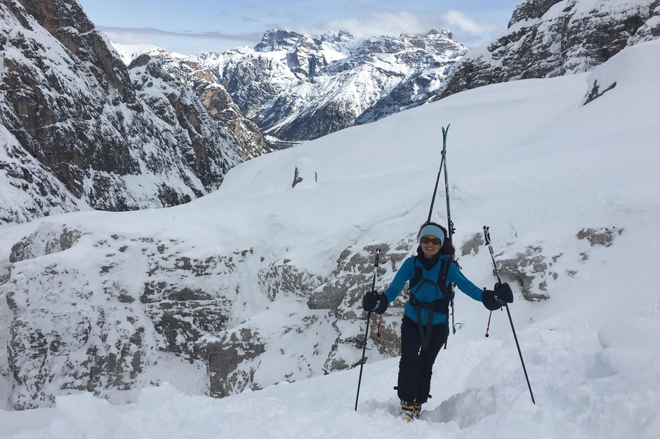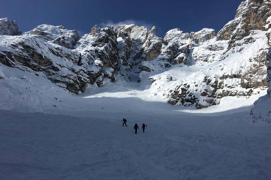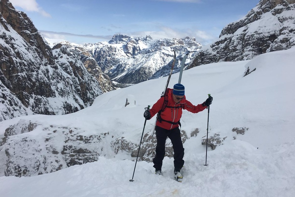 ContattaciBella e impegnativa attraversata di sci alpinismo alla Forcella Cristallino di Misurina con Giuseppe, Bea e Filippo.