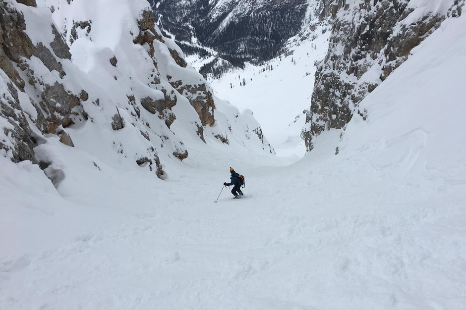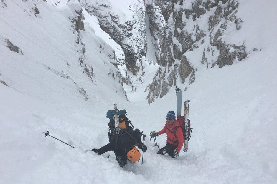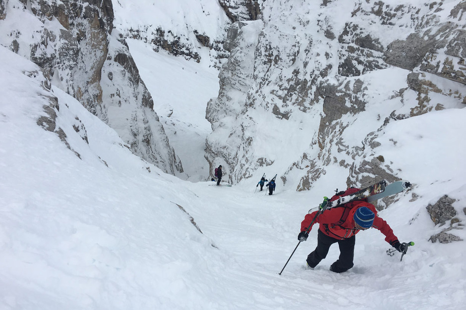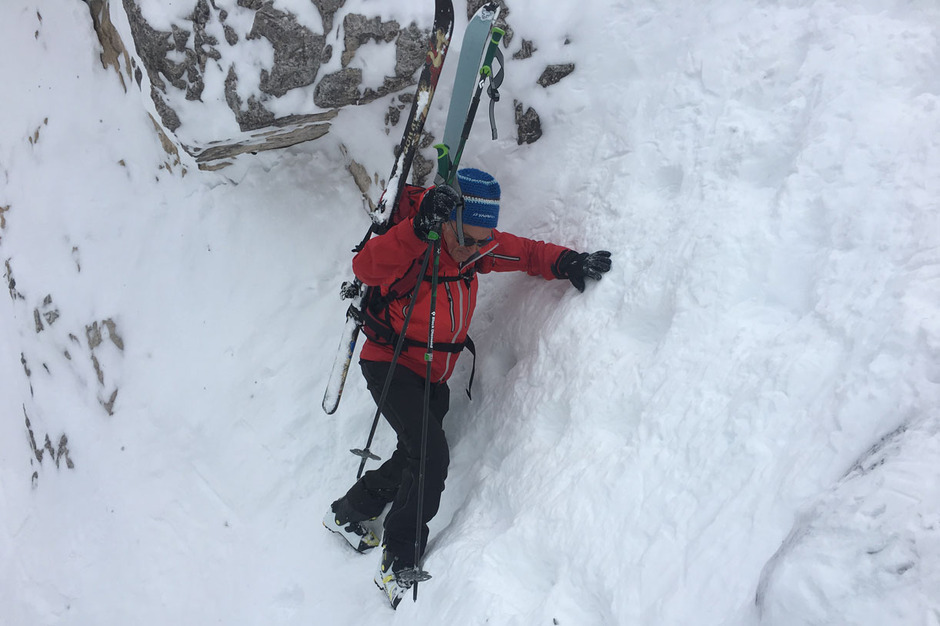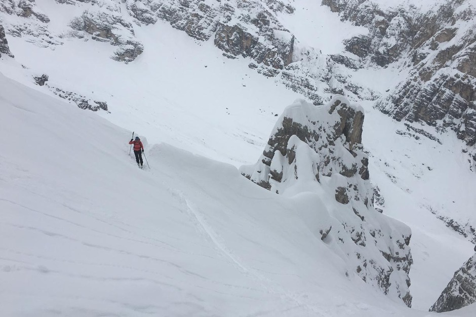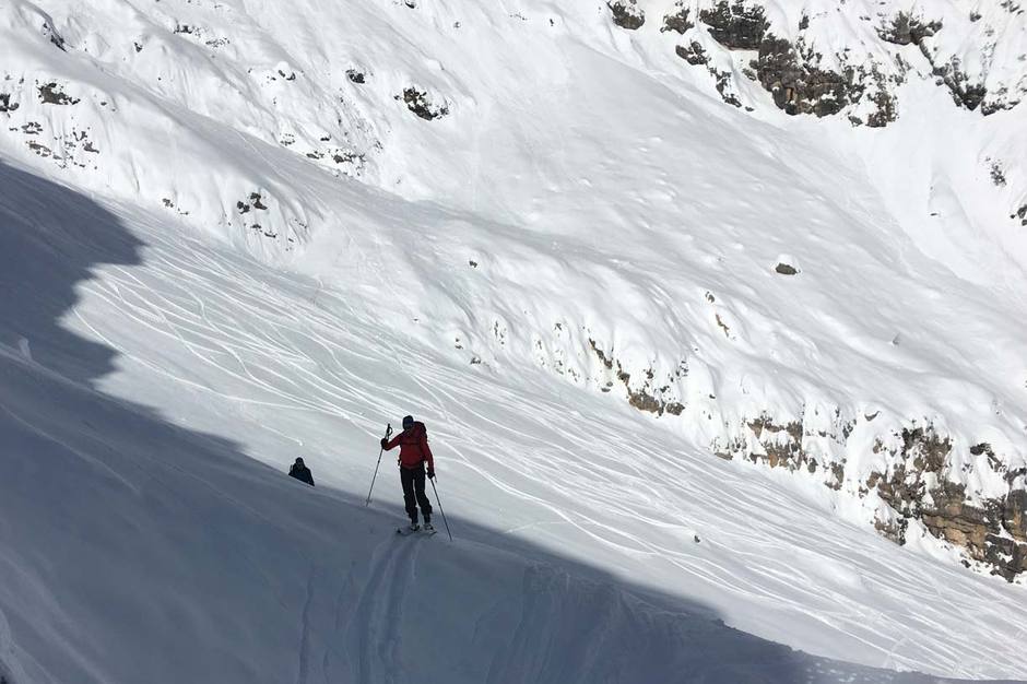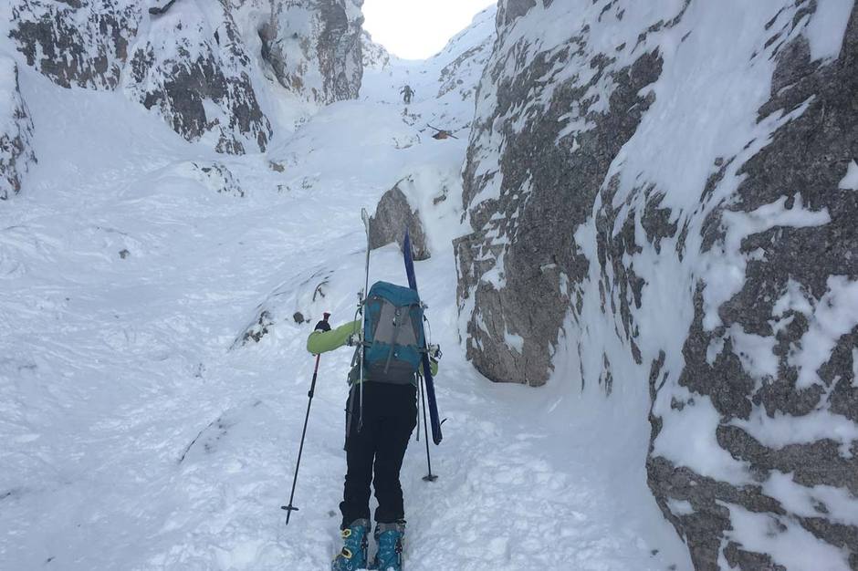 Abbiamo trovato neve farinosa e soffice fino alla fine del grande vallone, mentre nella parte finale del bosco la neve era più pesante e bagnata.