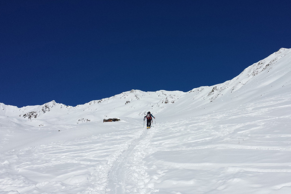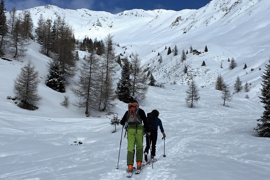 L'escursione sci alpinistica inizia dal paese di Santa Maddalena. La prima parte dell'itinerario segue la strada forestale lungo il bosco, per poi risalire una bella vallata con lunghi e dolci pendii che portano fino alla vetta del monte Kaserspitz a 2766 metri di quota.