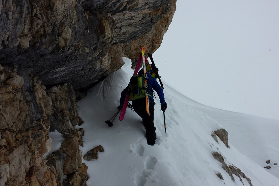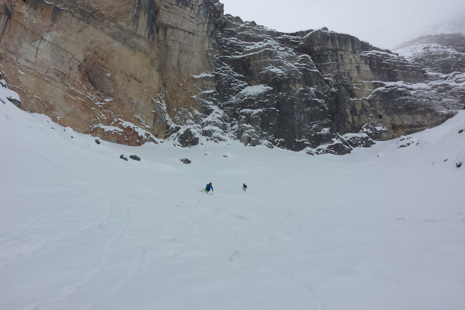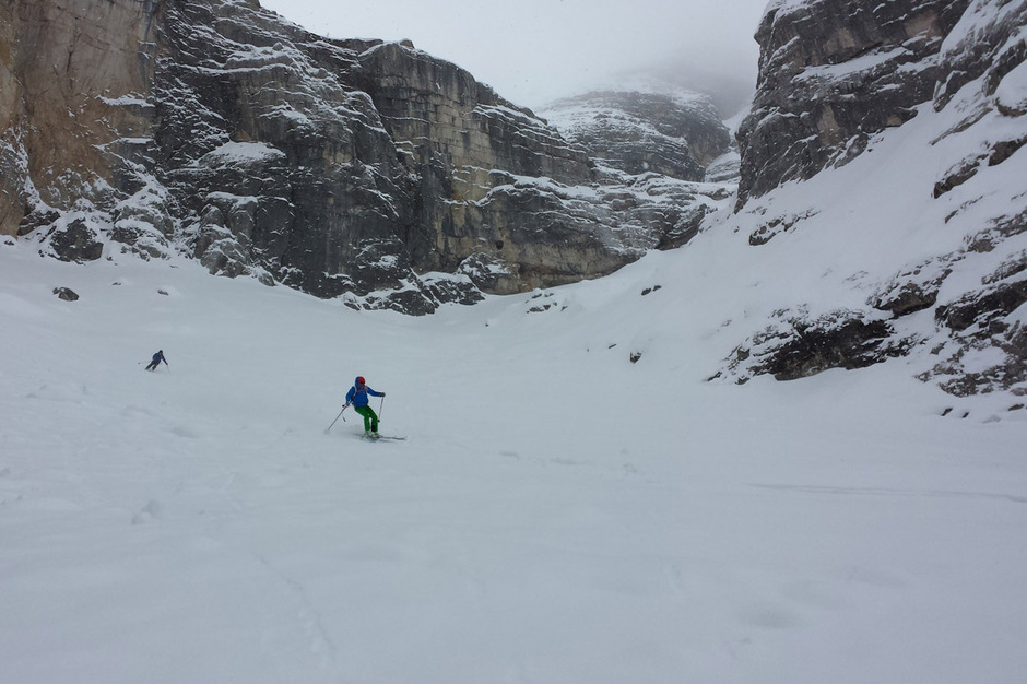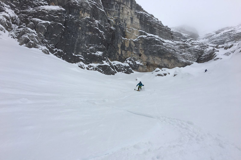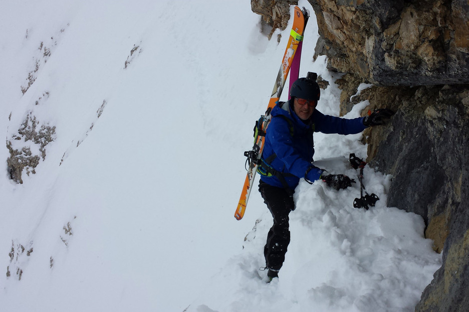 Poi, una fantastica sciata freeride in neve polverosa in ambiente grandioso. Quindi un altro tratto sci alpinistico e una seconda memorabile sciata lungo il Vallon de Raola.