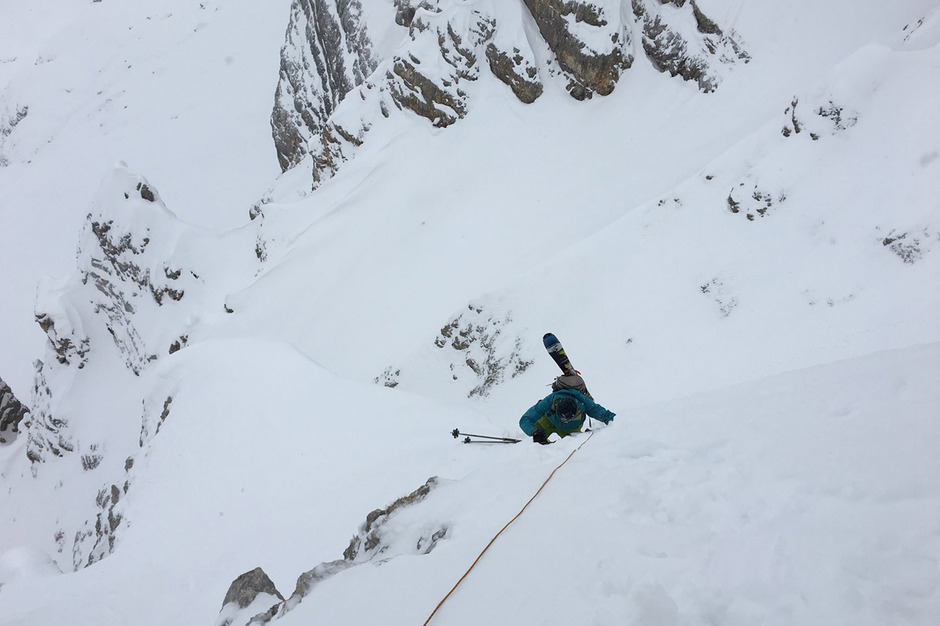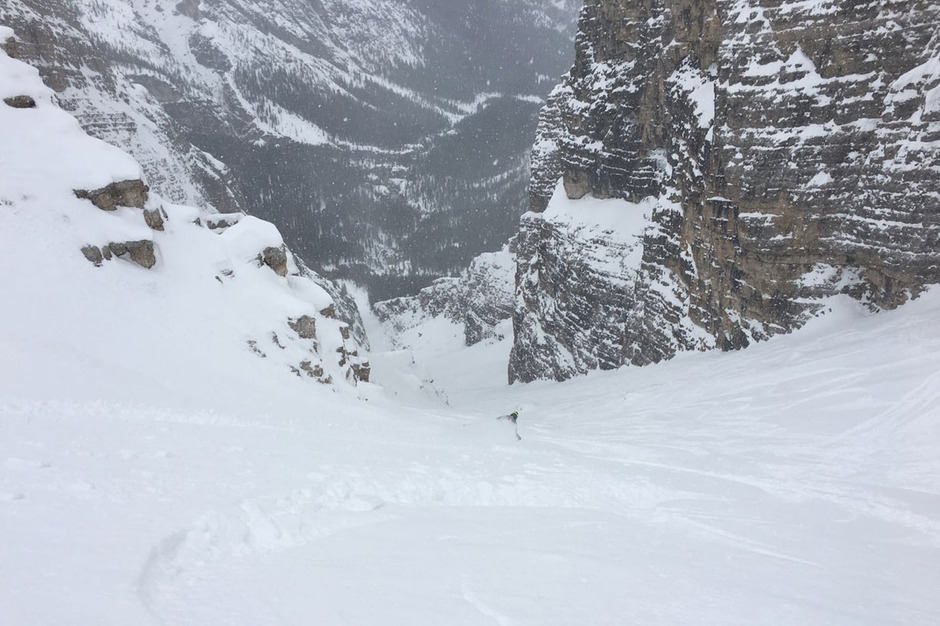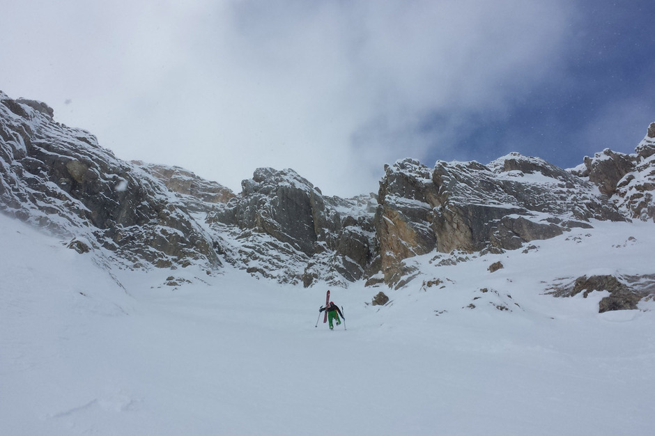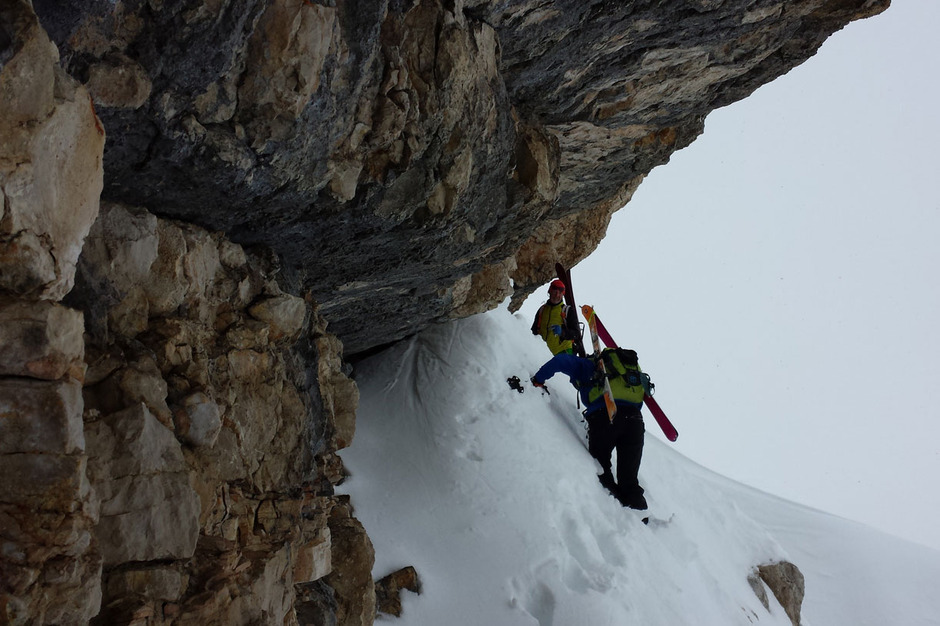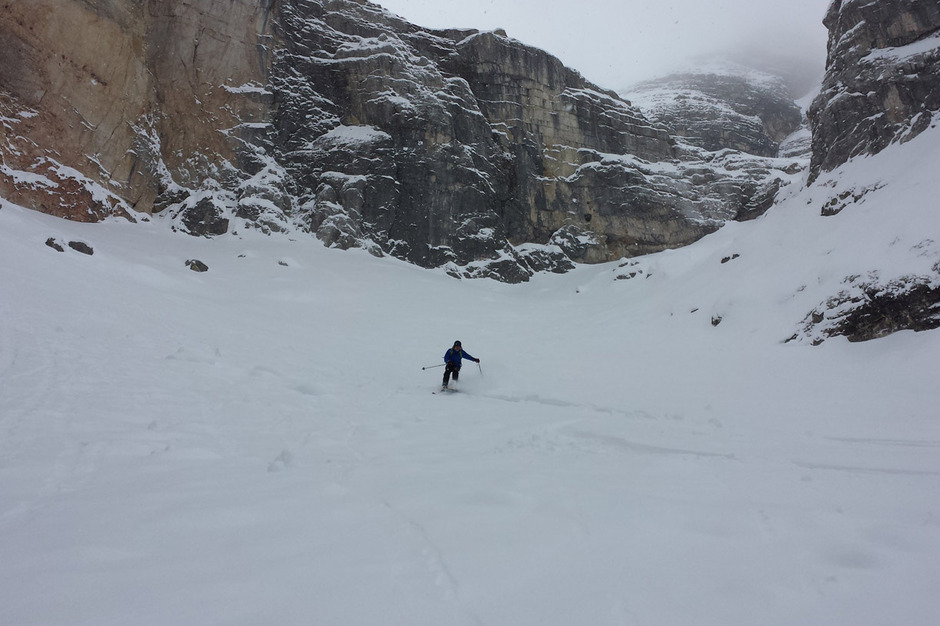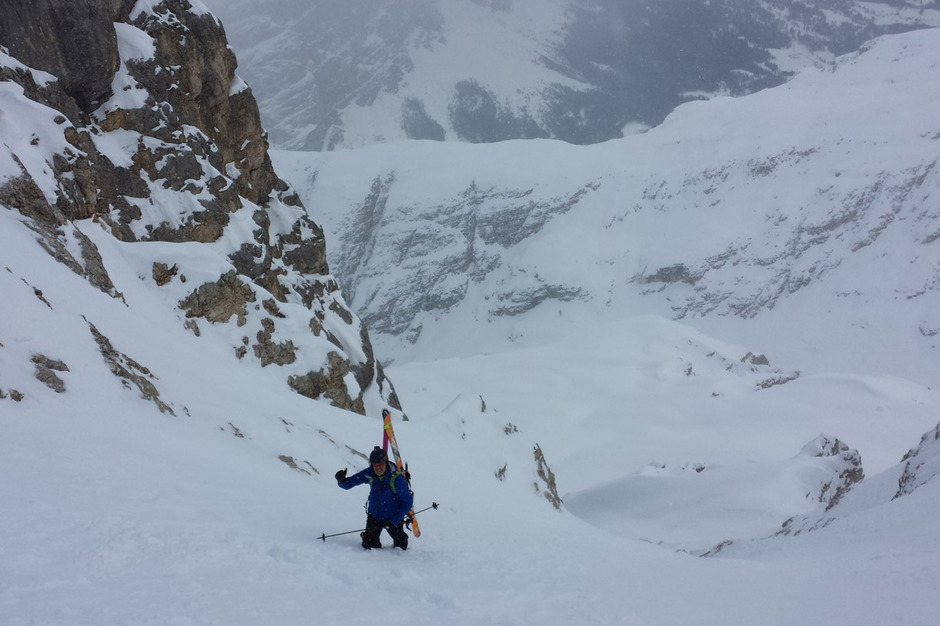 Poi, una fantastica sciata freeride in neve polverosa in ambiente grandioso. Quindi un altro tratto sci alpinistico e una seconda memorabile sciata lungo il Vallon de Raola.