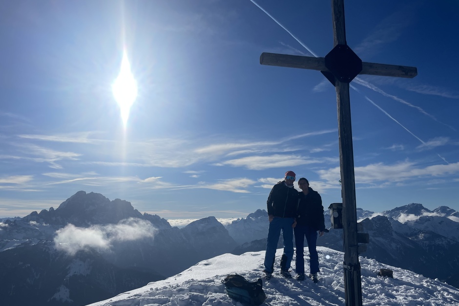 Assieme ad Elena con passo spedito abbiamo raggiunto la cima in poco più di 2 ore accompagnati da un tempo stupendo regalandoci un panorama a 360 gradi su tutte le cime più alte delle Dolomiti