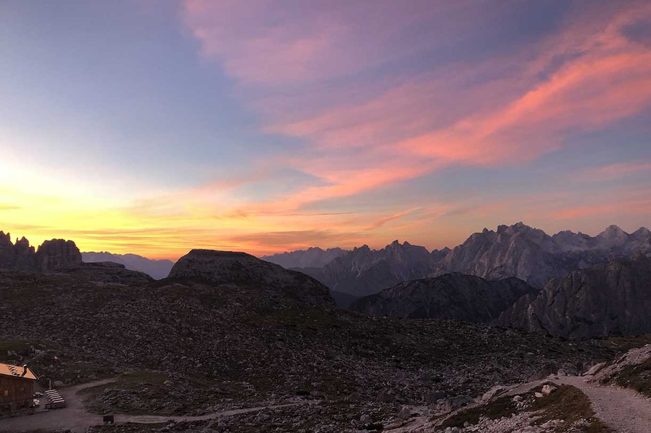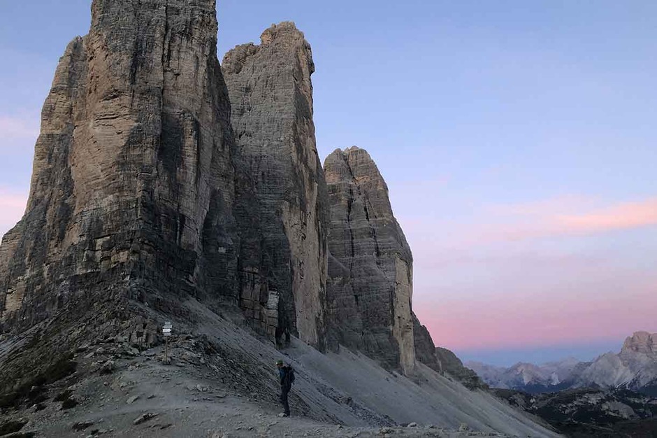 Contattaci"Sveglia alle 5 del mattino, ancora buio per andare all'attacco della via Dibona alla Cima Grande di Lavaredo. Con Giorgio e Andrea, alle 6,30 siamo all'attacco della via e l'alba comincia a dare il suo spettacolo con i suoi colori magici. Temperatura ideale e tempo splendido per affrontare i 500 metri di parete, con difficoltà massima di 5 grado.