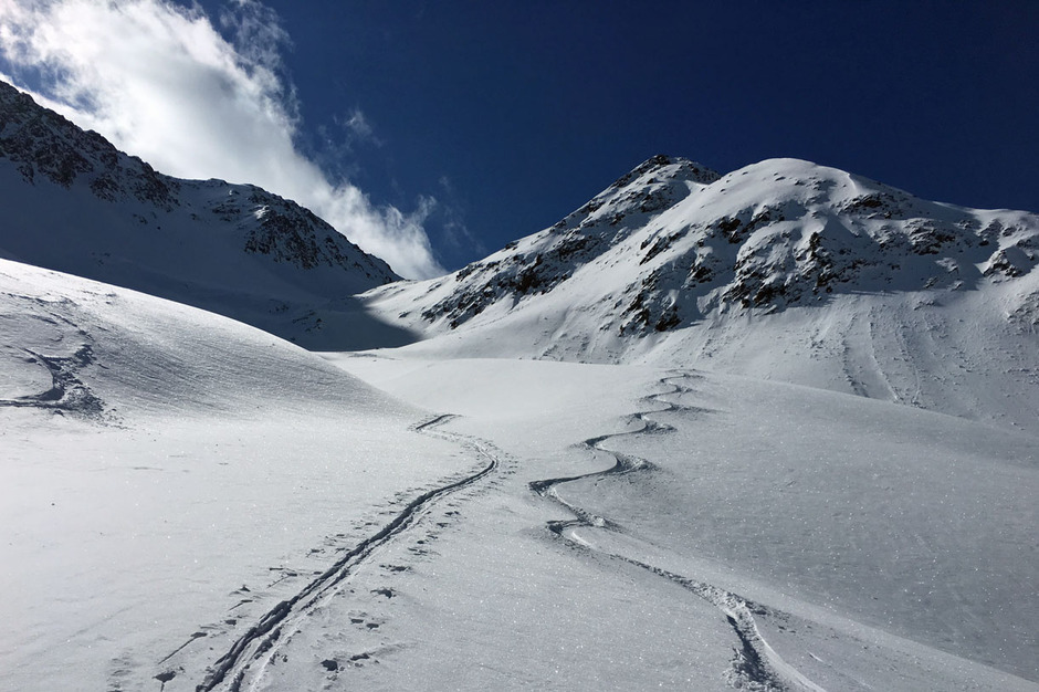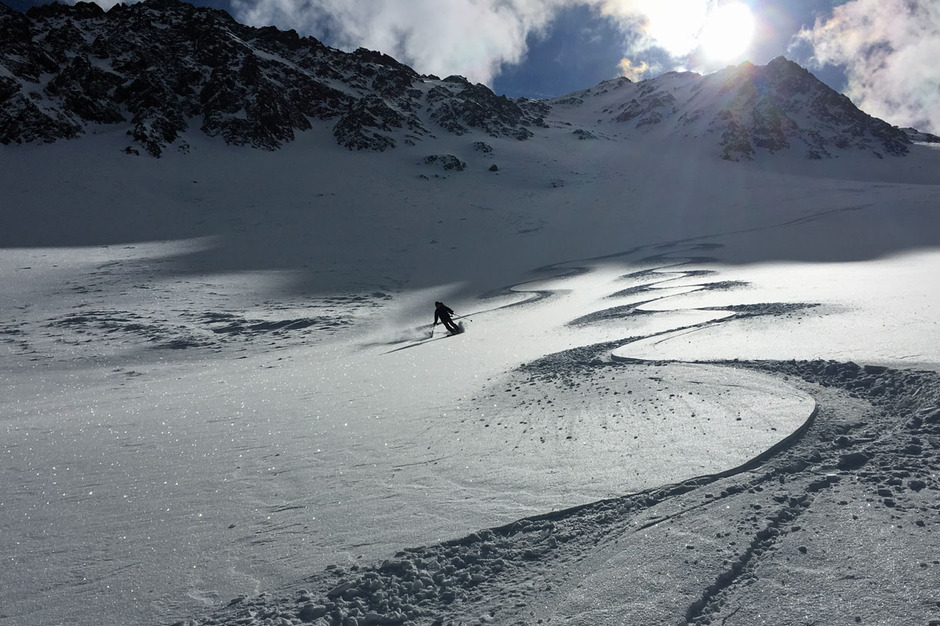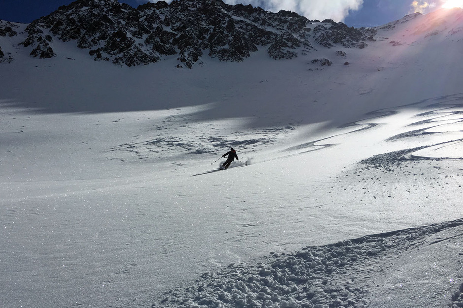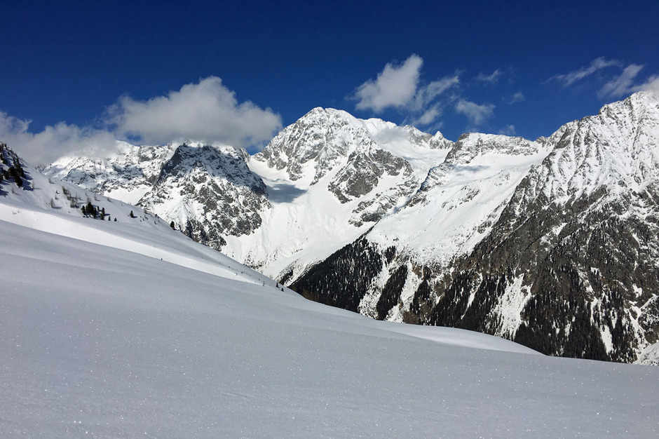 Il primo giorno nella Valle di Anterselva un sole splendido e neve fresca meravigliosa che ci ha permesso una sciata in fuoripista di grande soddisfazione.
