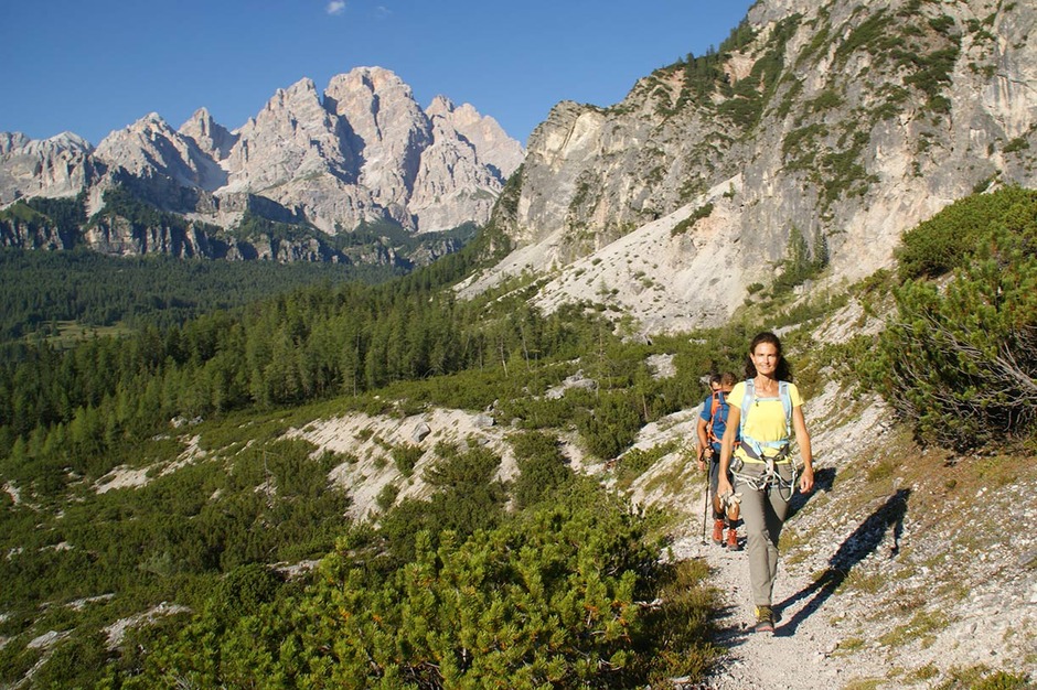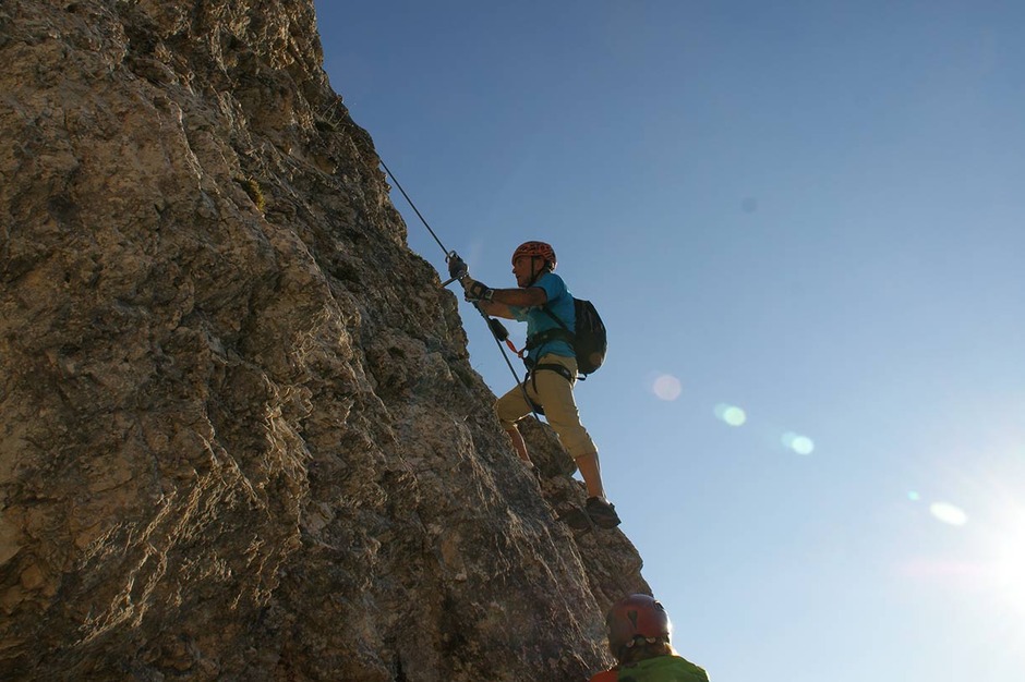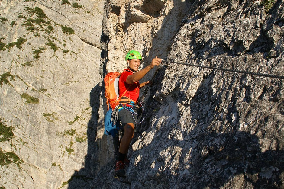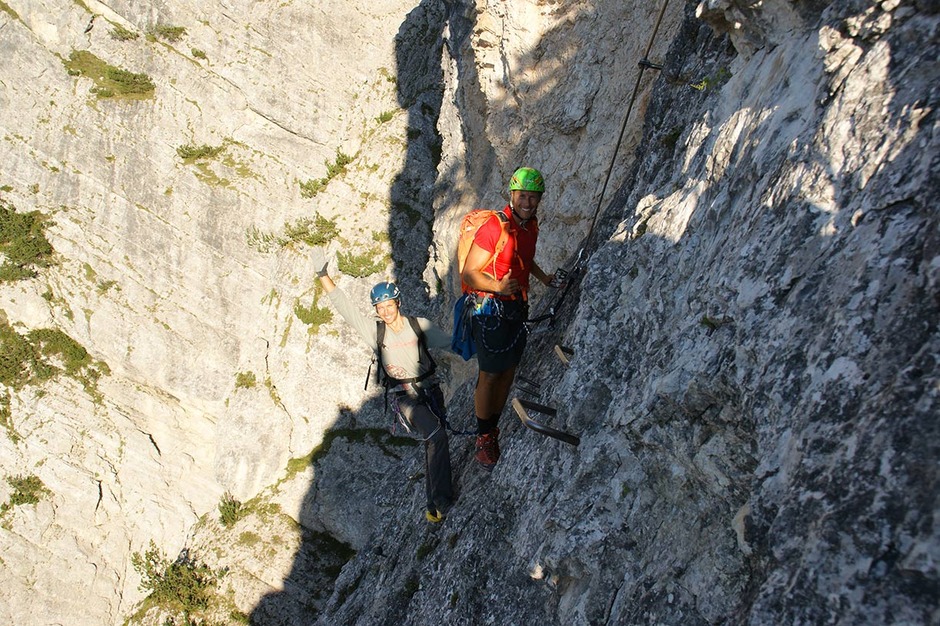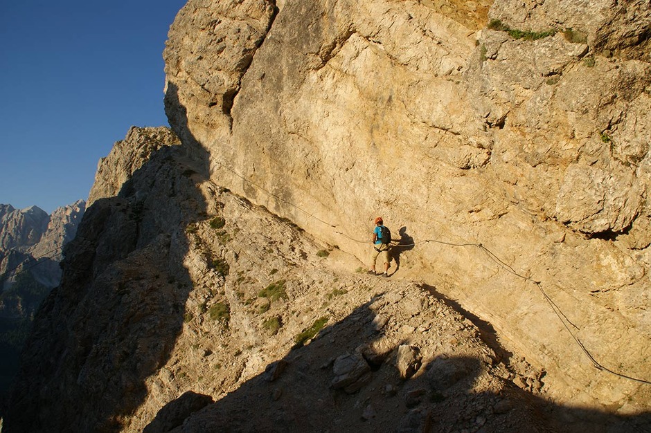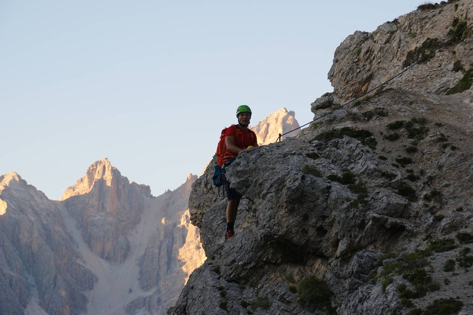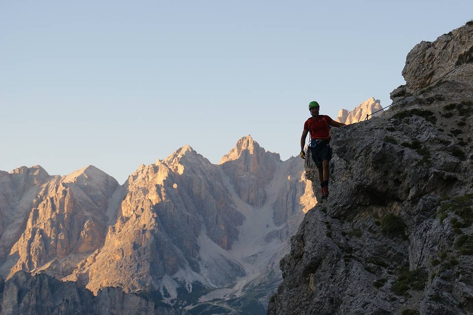 Partiti quindi da Cortina alle ore 17.00, con buon passo abbiamo raggiunto l’attacco della ferrata verso le sei della sera. La temperatura era ottimale per la salita e la luce del tramonto era spettacolare.