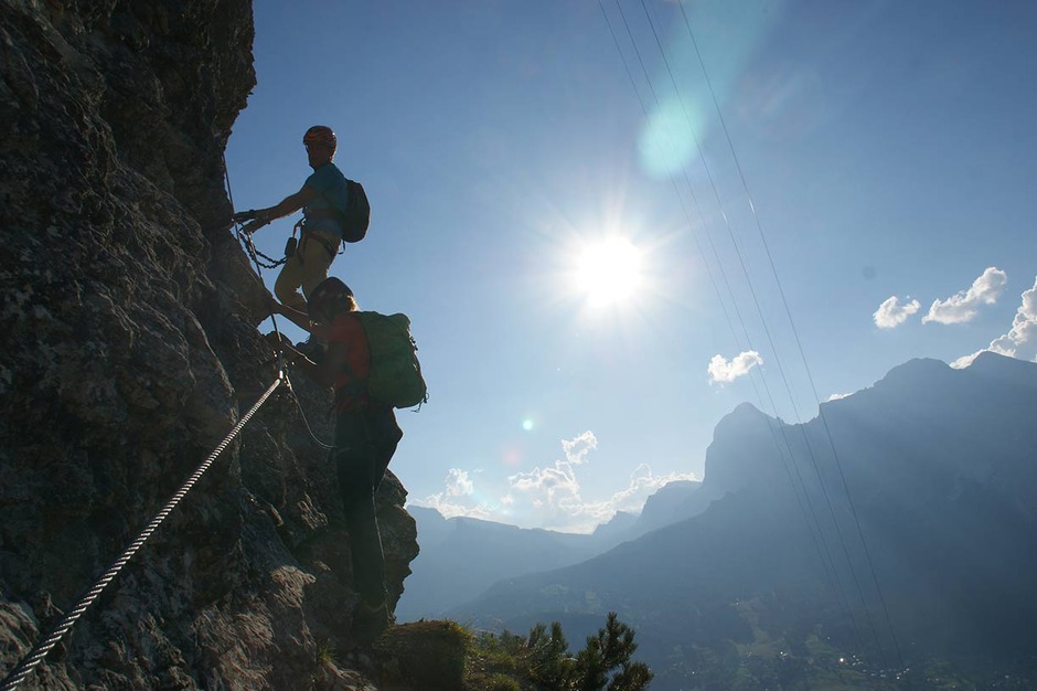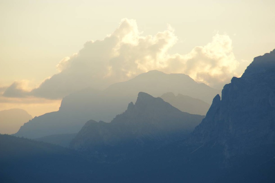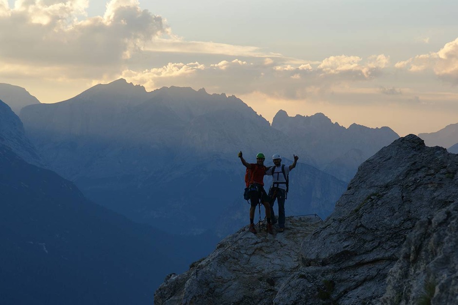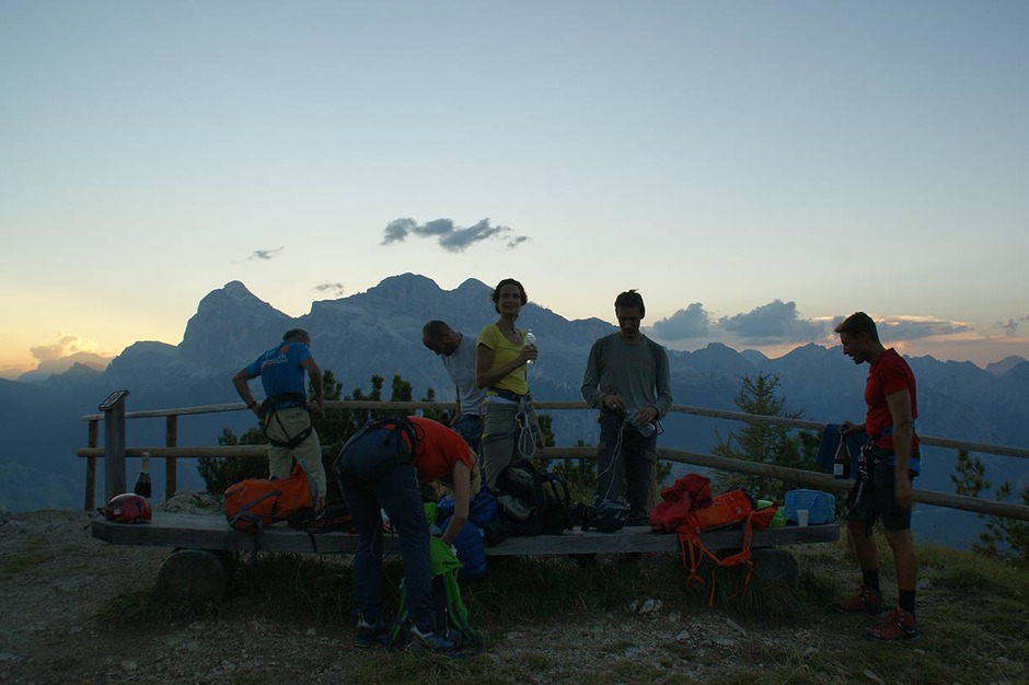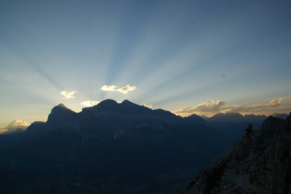 Dopo aver percorso la via ferrata siamo arrivati in cima al Faloria poco prima delle otto, in tempo per vedere l’ultimo raggio di sole tramontare dietro le Tofane.