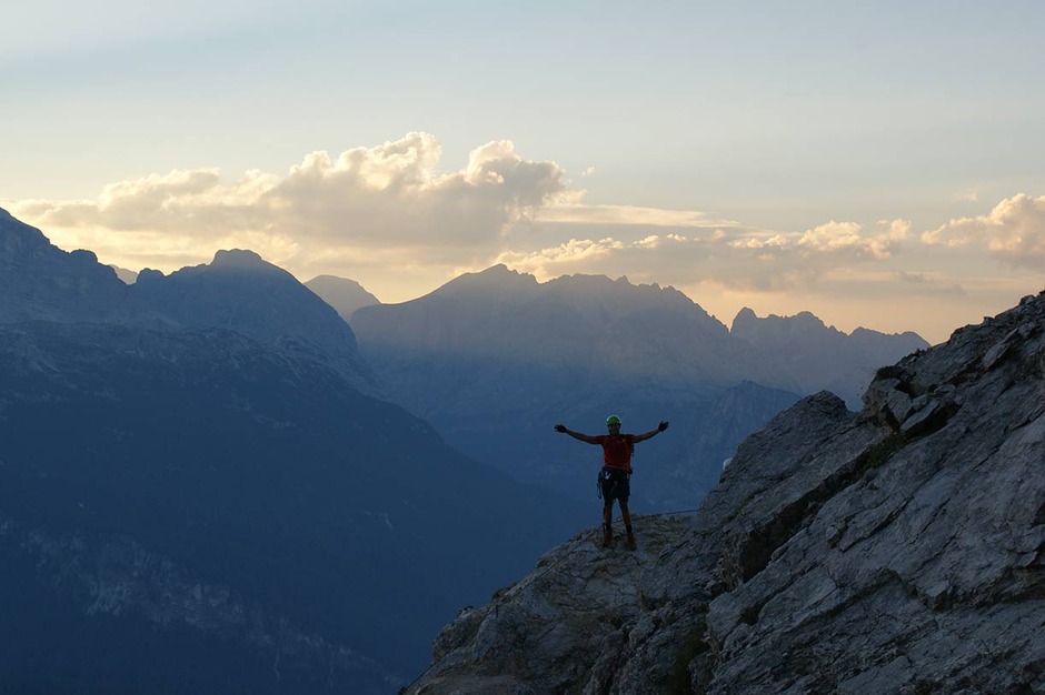 "Da tempo avevo in mente di salire la parete ovest del Monte Faloria con gli ultimi raggi di sole che illuminano la parete e arrivare in cima per ammirare il bellissimo tramonto dolomitico.