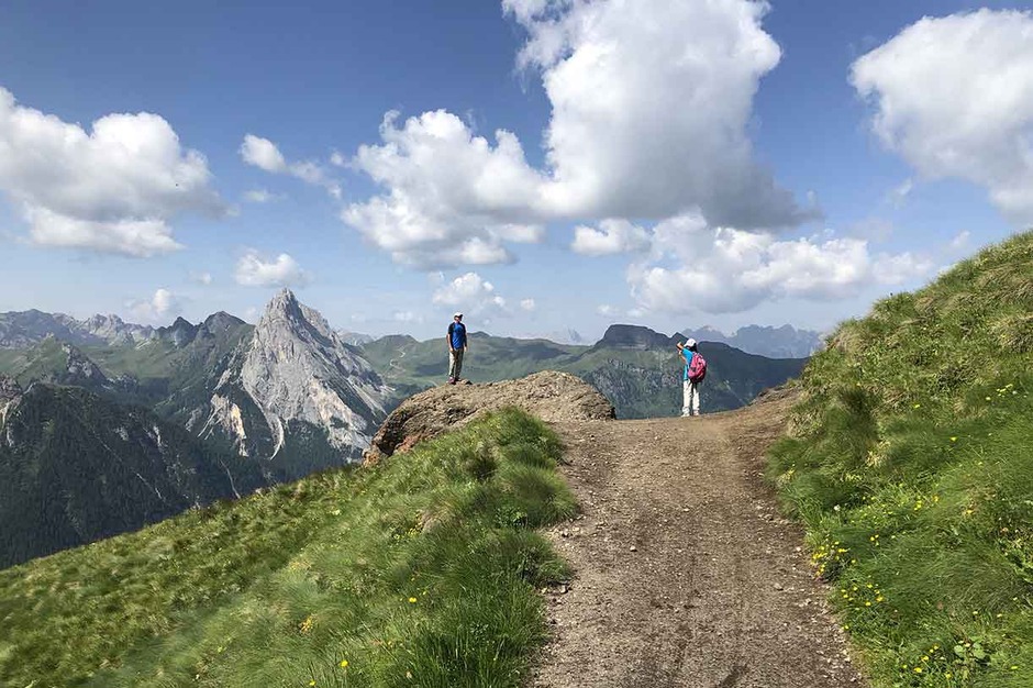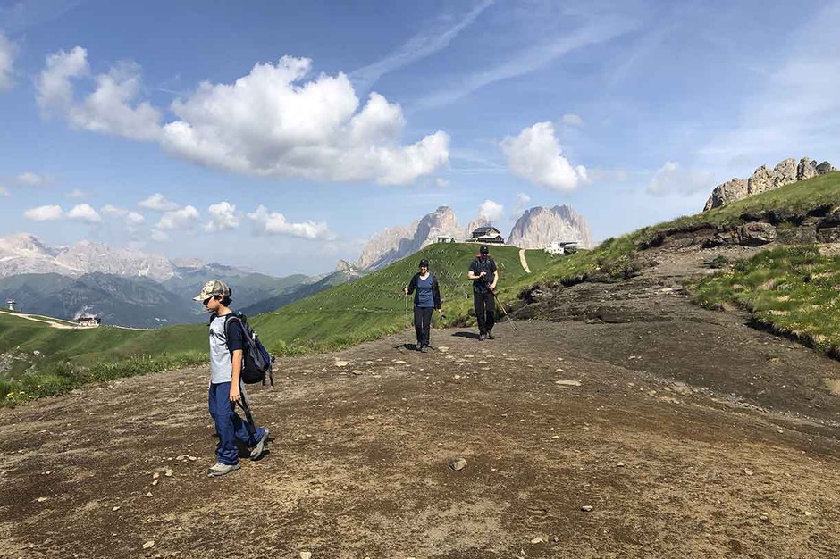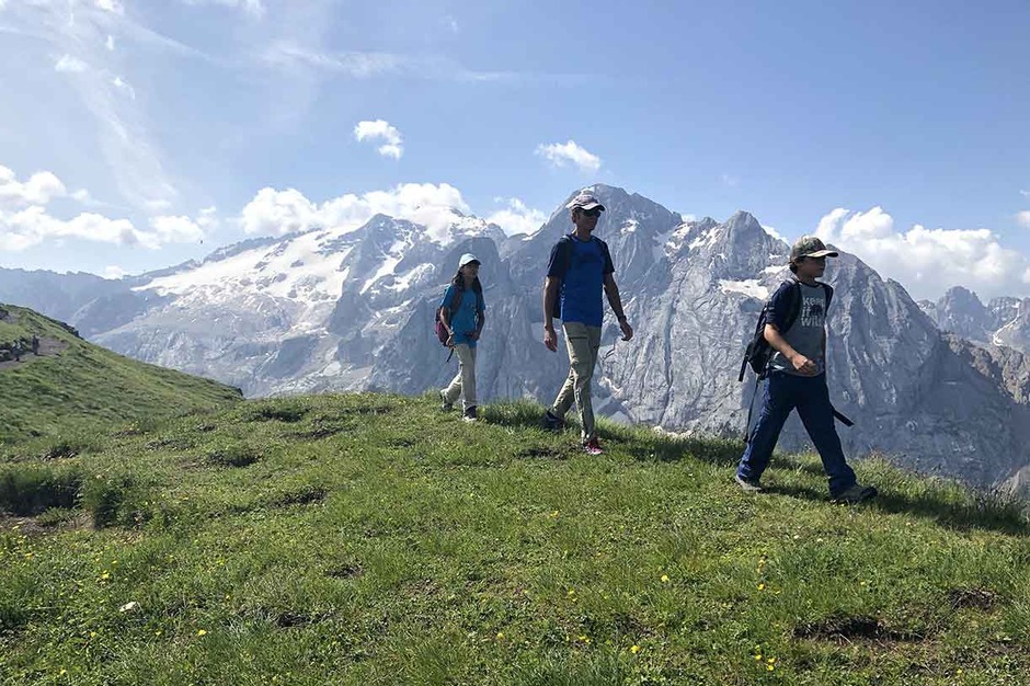Dolomiti SkiRock ha percorso questo trekking molto panoramico, con una famiglia americana, con due ragazzi bravissimi di 11 anni, rimanendo sempre in quota, avendo come sfondo il Gruppo del Sella e la maestosa Marmoladala, la Regina delle Dolomiti con i suoi 3300 metri.