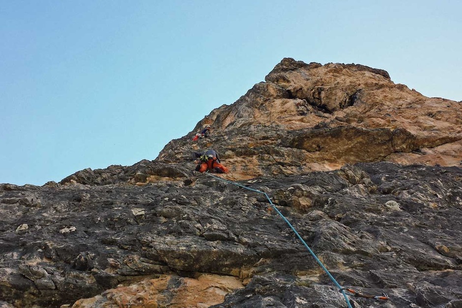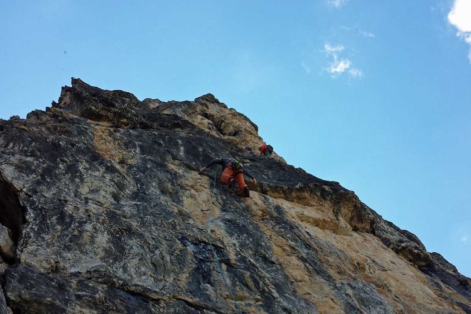 ContattaciBellissima arrampicata con Andrea lungo la Via Nikibi al Torrione Marcella dei Lastoni di Formin per l'occasione frequentato da altre tre cordate, due sulla nostra via e un'altra sulla vicina Via Paolo Amedeo.