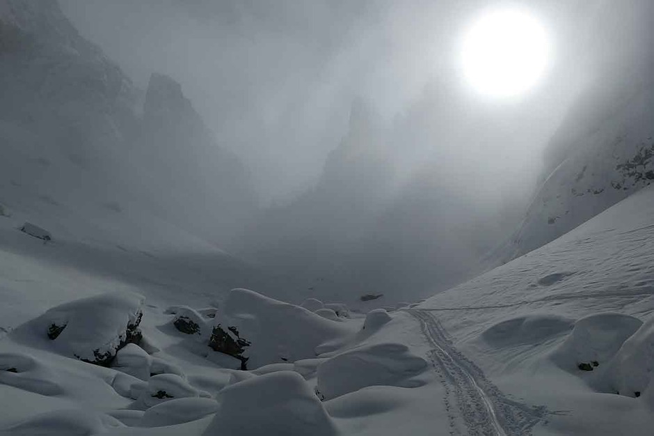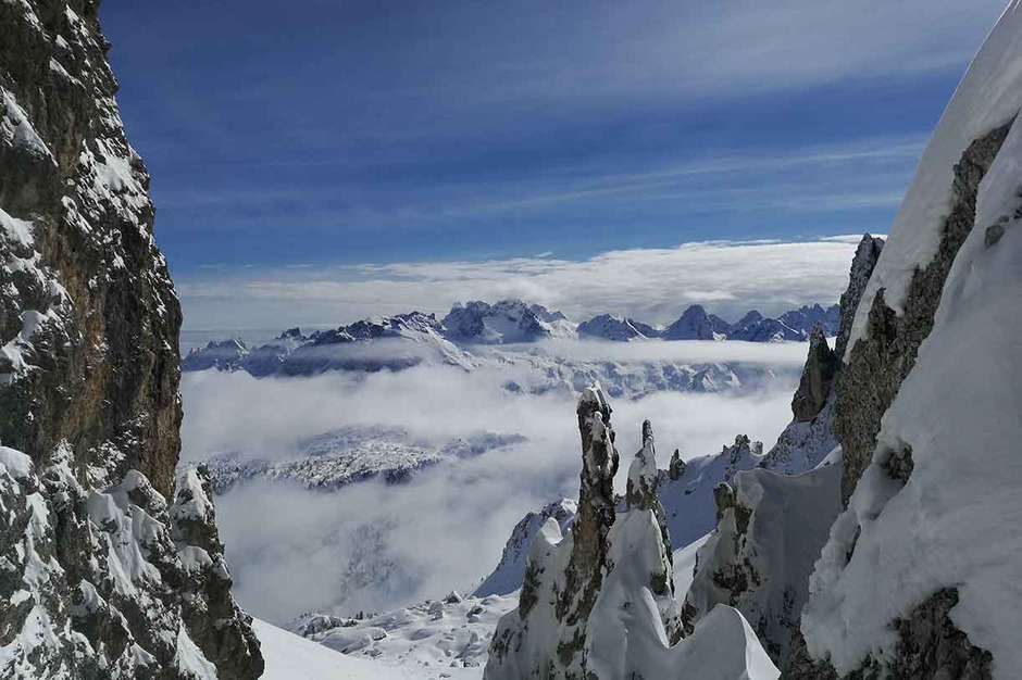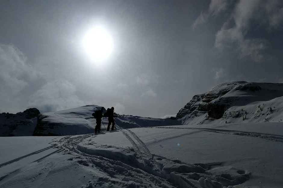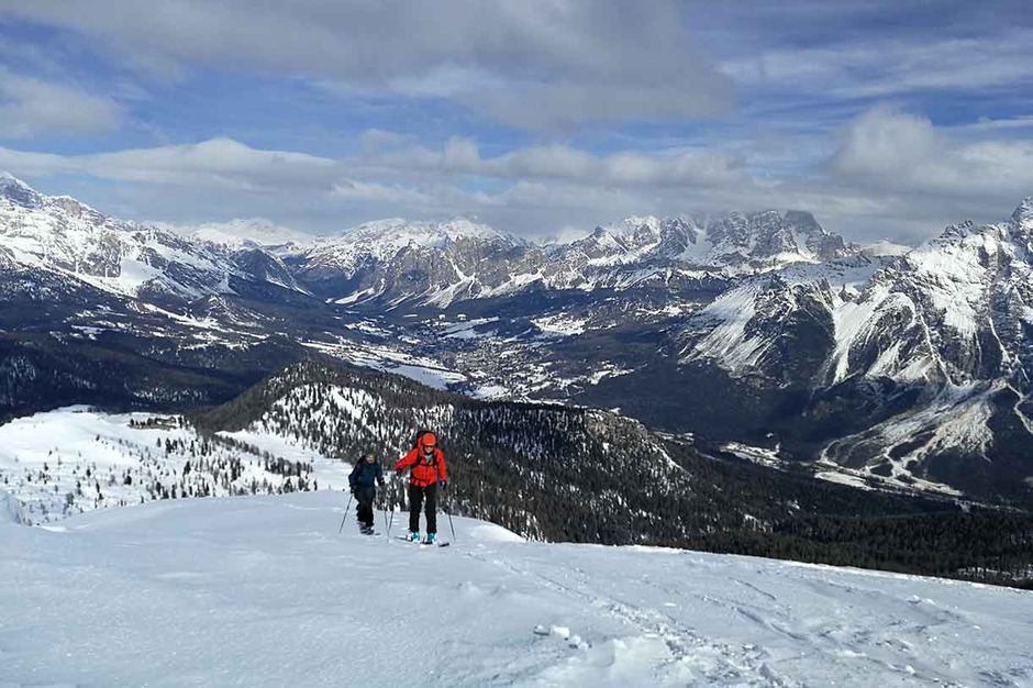 Tre giorni intensi tra salite sci alpinistiche e discese in freeride attorno a Croda da Lago, il Nuvolau e i Cadini di Misurina. Punto di appoggio per il pernottamento Malga Federa.